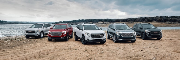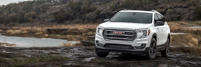 The road is unpredictable. That's why the Terrain small SUV is equipped with six GMC Pro Safety features to help make you aware of potential hazards and handle them with added confidence. Standard on SLE, SLT and AT4 trims. Denali is equipped with nine GMC Pro Safety Plus features.