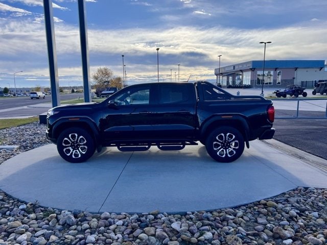 4WD, 120-Volt Bed Mounted Power Outlet, 2 1st Row USB Charge/Data Ports, 2 Rear USB Ports in Center Console (Charge-Only), 3.42 Rear Axle Ratio, 4-Way Manual Front Passenger Seat Adjuster, 4-Wheel Disc Brakes, 6 Speakers, 6-Speaker Audio System Feature, 6-Way Power Passenger Seat Adjuster, 8-Way Power Driver Seat Adjuster, ABS brakes, Adaptive Cruise Control, Air Conditioning, Alloy wheels, AM/FM radio, Apple CarPlay/Android Auto, AT4 Premium Package, Auto High-beam Headlights, Auto-dimming Rear-View mirror, Automatic Emergency Braking, Automatic Stop/Start, Automatic temperature control, Bed-Mounted Tubular Sport Bar (LPO), Black Badges (LPO), Blind Zone Steering Assist w/Trailering, Brake assist, Bumpers: body-color, Canyon Pro Safety, Canyon Safety Plus Package, Cloth/CoreTec Seat Trim, Compass, Delay-off headlights, Driver & Front Passenger Illuminated Visors, Driver & Front Passenger Ventilated Seats, Driver door bin, Driver Memory, Driver Mode Selector, Driver Seatback Map Pocket, Driver vanity mirror, Dual front impact airbags, Dual front side impact airbags, Dual-Zone Auto Climate Control Air Conditioning, Electronic Stability Control, Emergency communication system: OnStar, EZ-Lift & Lower Tailgate, Following Distance Indicator, Forward Collision Alert, Front anti-roll bar, Front Bucket Seats, Front Center Armrest, Front dual zone A/C, Front fog lights, Front LED Fog Lamps, Front License Plate Kit, Front Passenger Seatback Map Pocket, Front Pedestrian & Bicyclist Braking, Front reading lights, Front wheel independent suspension, HD Surround Vision, Heated door mirrors, Heated Driver & Front Passenger Seats, Heated front seats, Heated Steering Wheel, Illuminated entry, Inside Rear-View Auto-Dimming Mirror, Integrated Trailer Brake Controller, IntelliBeam Automatic High Beam On/Off, Interior Overhead Courtesy Light w/Dual Reading Lamp, Laminated Windshield Acoustic Glass, Lane Keep Assist w/Lane Departure Warning, Low tire pressure warning, Multicolor 6.3 Diagonal Head-Up Display, MultiStow Tailgate Storage Compartment, Navigation System, Nightfall Edition, Occupant sensing airbag, Off-Road Suspension, Outside temperature display, Overhead airbag, Overhead console, Panic alarm, Passenger door bin, Passenger vanity mirror, Perforated Leather-Appointed Seat Trim, Power door mirrors, Power Driver Lumbar Control Seat Adjuster, Power driver seat, Power Inner Sliding Glass Sunroof w/Manual Shade, Power Passenger Lumbar Control Seat Adjuster, Power steering, Power windows, Preferred Equipment Group 4SG, Premium 7-Speaker Bose Sound System, Radio data system, Radio: 11.3 Diagonal Premium GMC Infotainment Sys, Rear Center Fold-Down Armrest w/2 Cupholders, Rear Cross Traffic Braking, Rear of Console 120-Volt Power Outlet, Rear Pedestrian Alert, Rear reading lights, Rear step bumper, Rear window defroster, Remote keyless entry, Remote Vehicle Starter System, Rocker Panel Protector (LPO), Security system, SiriusXM w/360L, Speed control, Speed-sensing steering, Split folding rear seat, Steering wheel mounted audio controls, Stop/Start System Disable Button Engine Control, Tachometer, Tailgate Keyed Cylinder Lock, Technology Plus Package, Telescoping steering wheel, Tilt & Telescopic Manual Steering Column, Tilt steering wheel, Traction control, Trip computer, Ultrasonic Rear Park Assist, Variably intermittent wipers, Wheels: 18 x 8.5 Dark Gray Machined Finish Alum, Wheels: 20 x 9 Machined Faced Aluminum, Wireless Apple CarPlay/Wireless Android Auto, Wireless Phone Charging, 4WD.