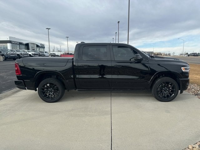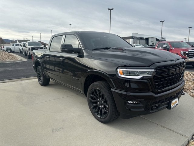 2025 Ram 1500 Limited Diamond Black Crystal Pearlcoat 4WD 8-Speed Automatic 3.0L I612-Way/1-Way Trailer Connector, 14.4 Touchscreen Display, 19 Speakers, 240 Amp Alternator, 3.92 Rear Axle Ratio, 4-Wheel Disc Brakes, 4G LTE Wi-Fi Hot Spot, ABS brakes, Accent Color Door Handles, Accent Color Premium Power Mirrors, Accent Color Tailgate Handle, Adjustable pedals, Air Conditioning, Alloy wheels, AM/FM radio: SiriusXM with 360L, Apple CarPlay, Apple CarPlay/Android Auto, Audio memory, Auto High-beam Headlights, Auto Power-Folding Mirrors, Auto-dimming door mirrors, Auto-Dimming Exterior Driver Mirror, Auto-dimming Rear-View mirror, Auto-leveling suspension, Automatic temperature control, Black Day Light Opening Moldings, Black Exterior Truck Badging, Black Grille Surround Texture 7 Black, Black Headlamp Bezels, Black Painted Exterior Mirrors Caps, Black Tail Lamp Bezels, Body Color Front Bumper, Body Color Rear Bumper w/Step Pads, Bodyside moldings, Brake assist, Bumpers: chrome, Chrome Exterior Mirrors, Compass, Connected Travel & Traffic Services, Connectivity - US/Canada, Convex Wide-Angle Exterior Mirror Insert, Delay-off headlights, Disassociated Touchscreen Display, Dome Dual LED Reading Lamp, Driver door bin, Driver vanity mirror, Drowsy Driver Detection, Dual Exhaust w/Black Tips, Dual front impact airbags, Dual front side impact airbags, Dual-Pane Panoramic Sunroof, Electronic Stability Control, Evasive Steer Assist, Exterior 115V AC Outlet, Exterior Mirrors Courtesy Lamps, Exterior Mirrors w/Heating Element, Exterior Mirrors w/Memory, Exterior Mirrors w/Supplemental Signals, For Details, Visit DriveUconnect.com, Front anti-roll bar, Front Bucket Seats, Front Center Armrest w/Storage, Front dual zone A/C, Front fog lights, Front License Plate Bracket, Front reading lights, Front wheel independent suspension, Fully automatic headlights, Garage door transmitter, Genuine wood console insert, Genuine wood dashboard insert, Genuine wood door panel insert, Google Android Auto, GPS Antenna Input, GPS Navigation, Hands-Free Active Driving Assist System, harman/kardon® Speakers, HD Radio, Heads-Up Display, Heated door mirrors, Heated front seats, Heated rear seats, Heated steering wheel, Illuminated entry, Integrated Voice Command w/Bluetooth, Intersection Collision Assist System, Leather steering wheel, LED CHMSL Lamp, LED Dome/Reading Lamp, Limited Level A Equipment Group, Low tire pressure warning, Memory seat, Navigation System, Night Edition, Occupant sensing airbag, Outside temperature display, Overhead airbag, Overhead console, Panic alarm, ParkView Rear Back-Up Camera, Passenger door bin, Passenger vanity mirror, Pedal memory, Pirelli Brand Tires, Power door mirrors, Power driver seat, Power passenger seat, Power steering, Power windows, Premium Quilted Leather Bucket Seats, Quick Order Package 22M Limited, Radio data system, Radio: Uconnect 5 Nav w/12.0 Display, Radio: Uconnect 5 Nav w/14.4 Display, Rain sensing wipers, RAM Grille Badge - Black, Rear anti-roll bar, Rear reading lights, Rear seat center armrest, Rear step bumper, Rear window defroster, Remote keyless entry, Security system, SiriusXM w/360L, Smartphone As A Key Capable, Speed control, Split folding rear seat, Sport Performance Hood, Steering wheel mounted audio controls, Surround View Camera System, Tachometer, Telescoping steering wheel, Tilt steering wheel, Traction control, Traffic Sign Recognition, Trailer Brake Control, Tri-Fold Tonneau Cover, Trip computer, Turn signal indicator mirrors, USB Host Flip, Variably intermittent wipers, Ventilated front seats, Ventilated rear seats, Voltmeter, Wheels: 20 x 9 Premium Paint/Polished, Wheels: 22 x 9 Premium Black Aluminum.Odometer is 8707 miles below market average!CARFAX One-Owner.Casper Buick GMC Cadillac is proud to be your Casper Buick, Cadillac, GMC dealership of choice! You can find our new and used dealership on 6301 E 2nd Street. At Casper Buick GMC Cadillac it'